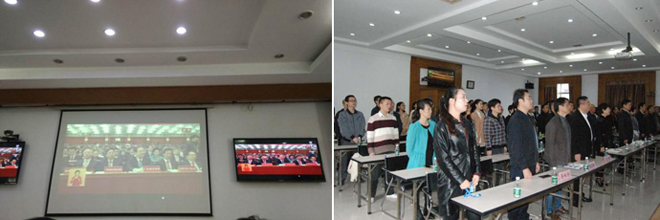 9時(shí)正,隨著李克強(qiáng)總理宣布大會(huì)開始,我集團(tuán)公司主、分會(huì)場與會(huì)人員全體起立,懷著激昂和真摯的情感同唱國歌,共同緬懷老一輩革命家。隨后,與會(huì)人員仔細(xì)聆聽了習(xí)近平同志所作的報(bào)告,大家聚精會(huì)神、專心聆聽,不時(shí)提筆記錄報(bào)告內(nèi)容和內(nèi)心感想,整個(gè)會(huì)場洋溢著濃厚的學(xué)習(xí)氛圍,聽到激動(dòng)人心處都情不自禁地鼓掌,為我們偉大的祖國、偉大的中國共產(chǎn)黨而驕傲和自豪。大家紛紛表示要不忘初心,牢記使命,堅(jiān)決維護(hù)中央決定,堅(jiān)決同以習(xí)近平同志為核心的黨中央保持高度一致,始終堅(jiān)持黨的領(lǐng)導(dǎo),聽黨的話,以更加飽滿的精神狀態(tài),更加扎實(shí)的工作作風(fēng)努力工作,為實(shí)現(xiàn)美麗中國夢(mèng)貢獻(xiàn)個(gè)人力量。