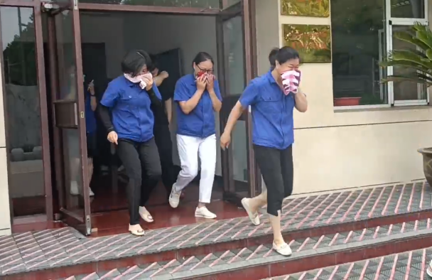 應急逃生演練模擬辦公樓配電箱過載引發(fā)火災,警報響起,伴有大量濃煙,組織所有人員進行逃生疏散。采用煙霧生成器,通過制造大量煙霧模擬實際著火情況,讓辦公樓的員工在實戰(zhàn)中掌握逃生技能。辦公樓所有員工按照路線有序進行疏散,靠右側低頭捂鼻快走,沒有擁擠和奔跑,用時1分22秒完成安全轉移,圓滿達成此次應急逃生演練的目的。